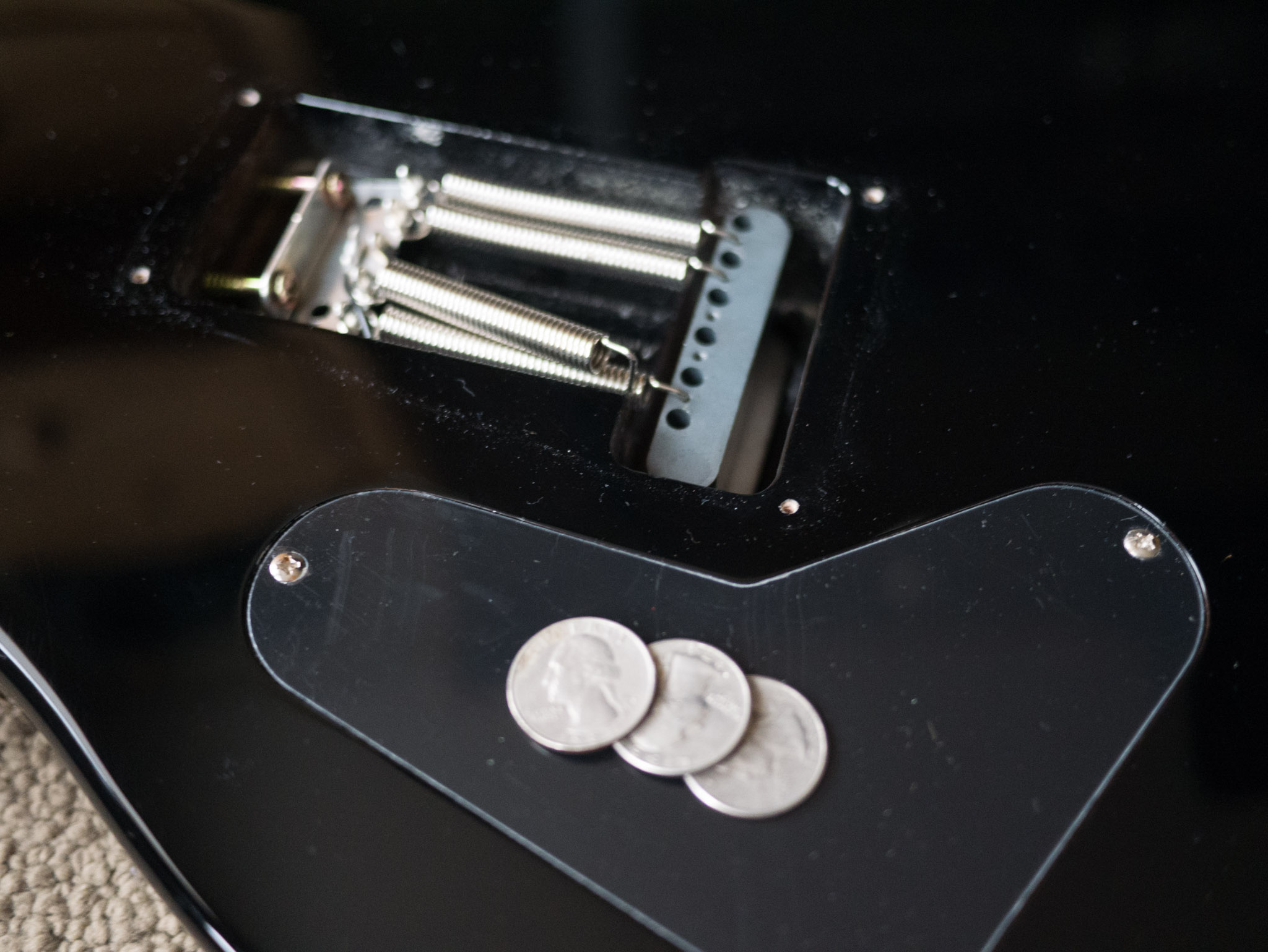 Another issue with a guitar that has a bunch of springs in the back is that they reverberate like a spring reverb tank. You can lay a thick felt pad under the springs to dampen their vibration if desired.