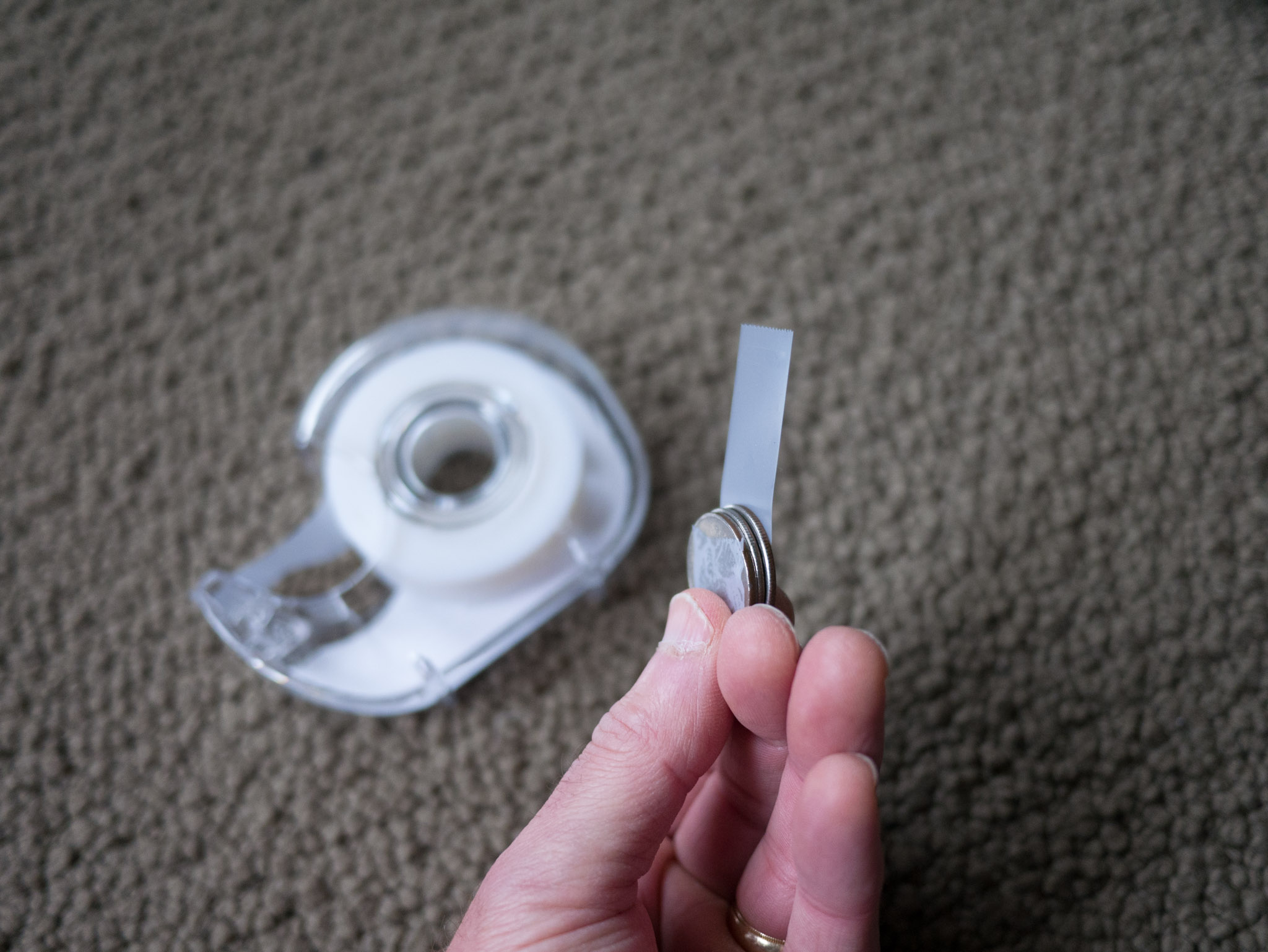 First I removed the center spring. Then, for a spacer, I found that 3 quarters were about the right thickness, so I taped them together.